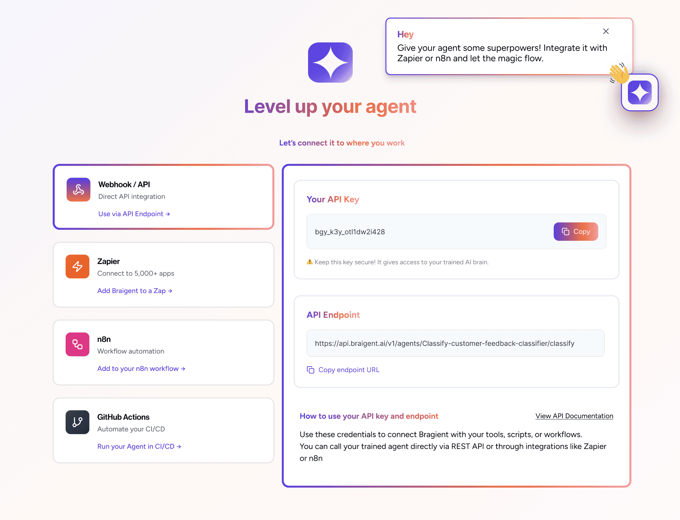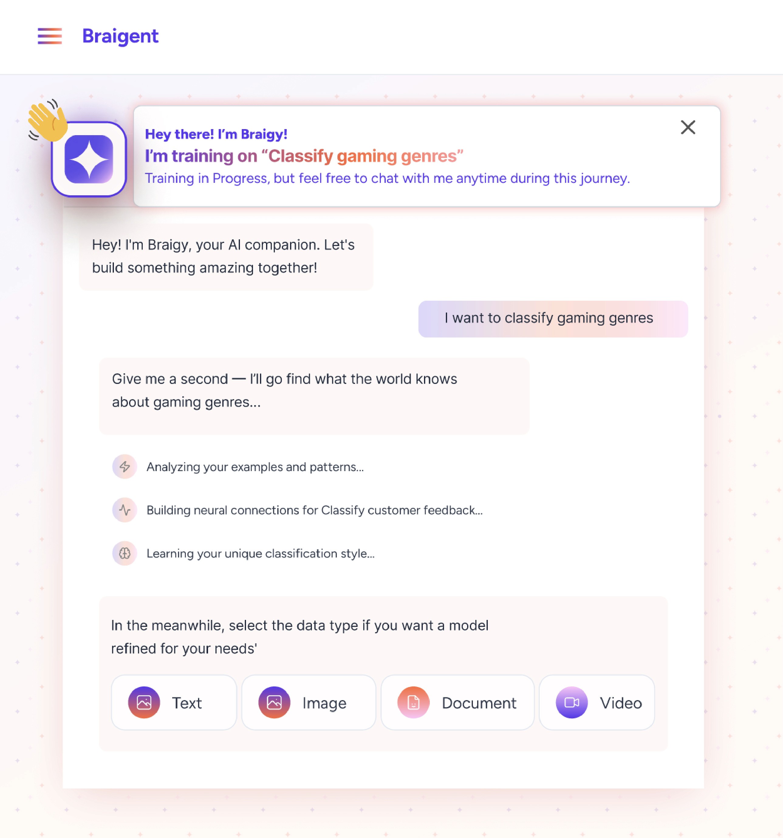 Teach Braigent your reasoning with just a few examples. No prompt engineering or coding knowledge required.